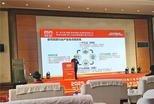 2025年12月6日,以“政策引领,食药同源行业启航;共创、共建、共享人平易近健康财产生态链”为从题的2025年第二届中国(成都)食药同源行业高质量成长大会暨食药同源108个平易近族品牌陪跑打算启动典礼正在成都隆沉举行。本次大会由国度村落复兴局健康帮扶工做办公室、全国(区)县域居平易近健康办理工程管委会从办,全国食药同源高质量农业财产联盟、四川壹贰零陆食药同源研究院等结合承办。部分相关带领、行业学者专家、全国各地企业家代表及社会人士共500余人齐聚天府之国成都,配合切磋食药同源财产高质量成长新径,帮推村落复兴取健康中国2030严沉计谋的深度融合立异成长。